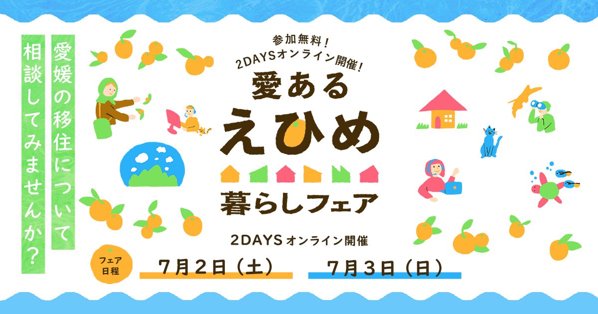 7月2日(土曜日)と3日(日曜日)の2日間、ご自宅から参加できるオンライン移住フェアを愛媛県が開催します。