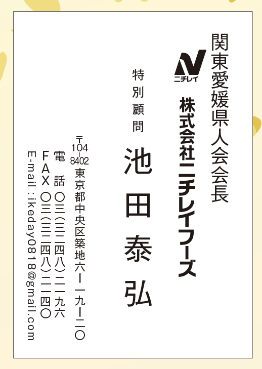 ・名刺の一番右側に、関東愛媛県人会の役職名を記述するよう統一します。